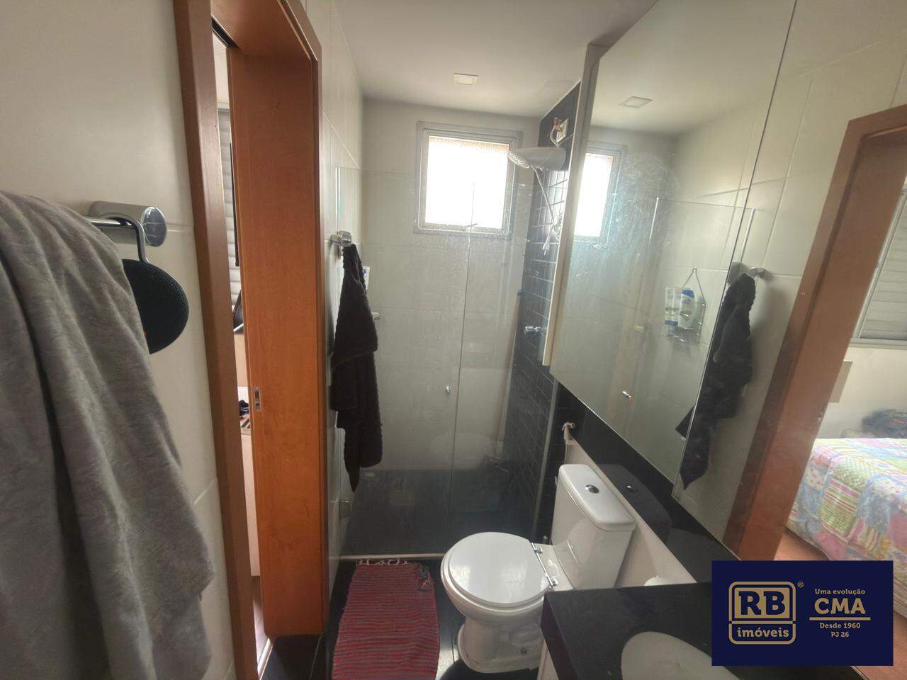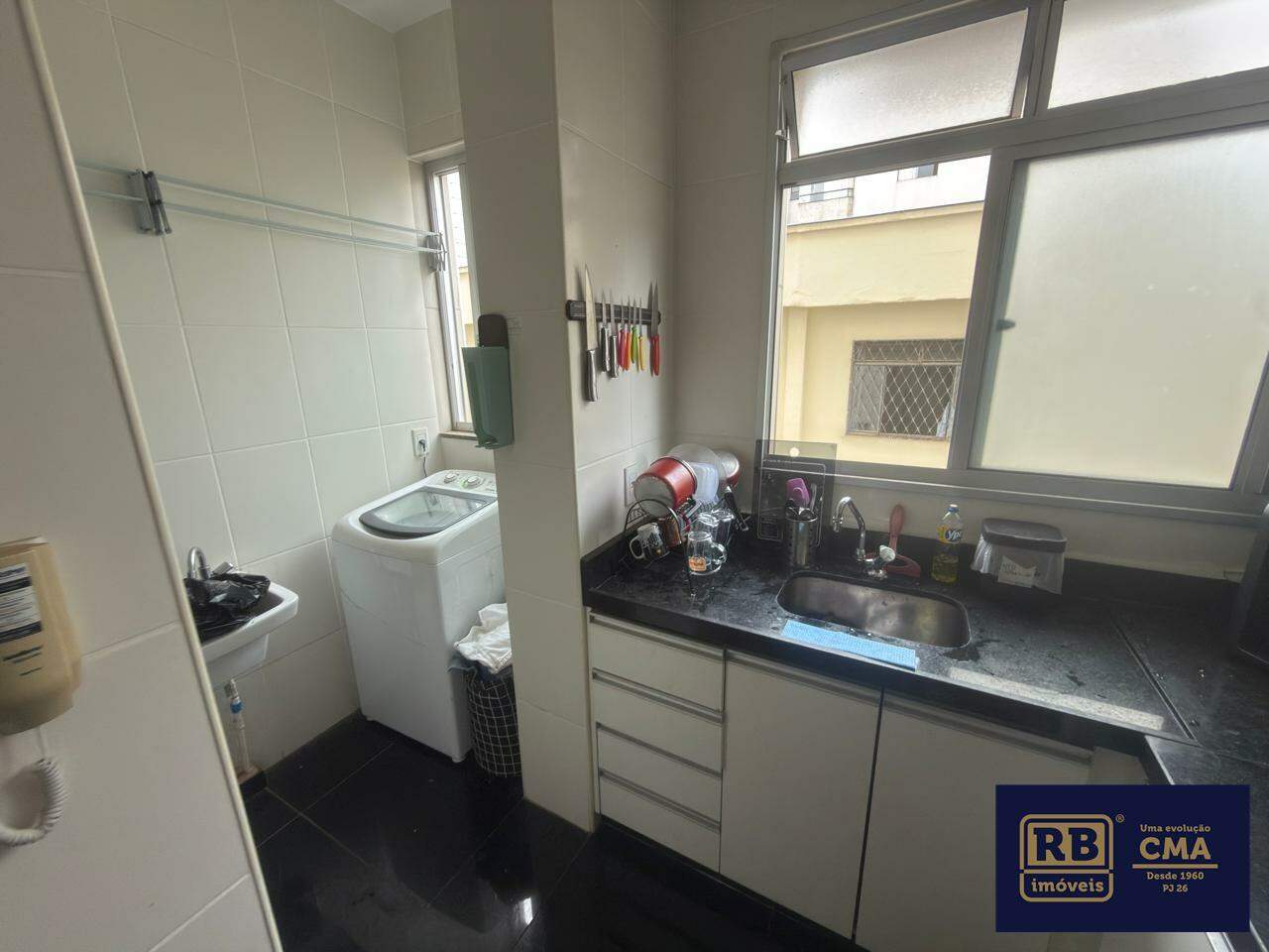 Apartamento: Sala para 2 ambientes, banho social com box e armários, 2 quartos com armários, sendo um suíte, cozinha espaçosa com armários e área de serviço separada. 2 vagas de garagem demarcadas em linha.