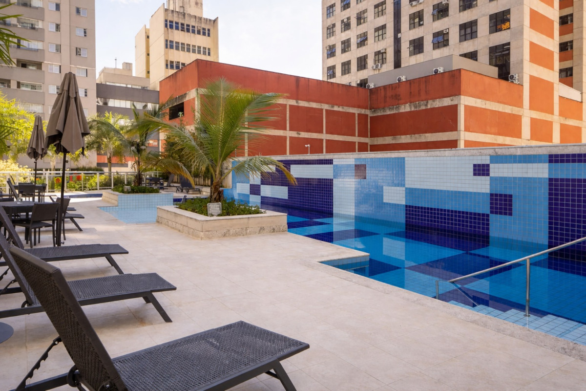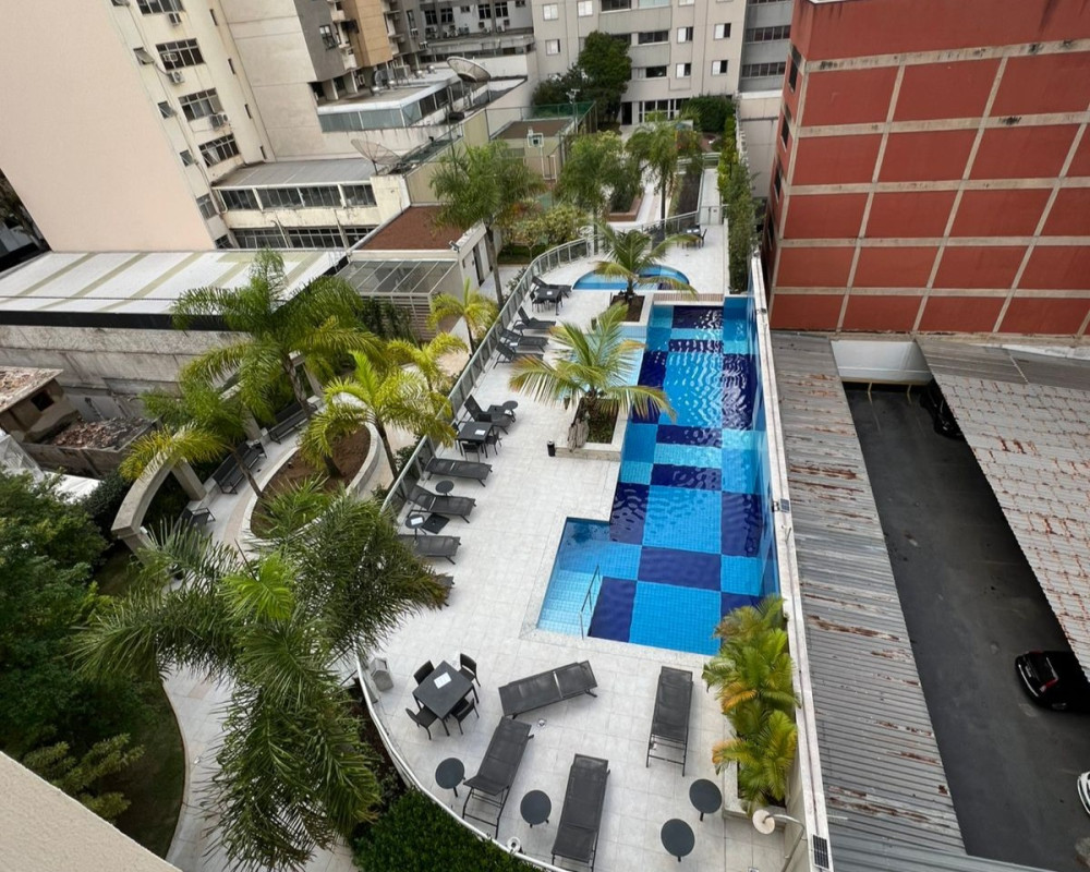 02 salões de festa, 02 piscinas (adulto/infantil), quadra poliesportiva, 02 churrasqueiras (espaço gourmet), espaço kids, sala de estudo e reuniões, salão de jogos e 02 academias.