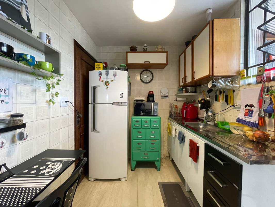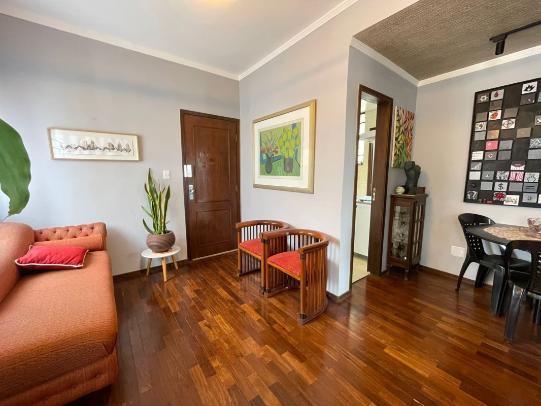 Apartamento com área de 63m², sala para 02 ambientes com piso em taco sintecado, pé-direito elevado com teto em sanca, 02 quartos amplos, ambos com armários e piso em taco sintetico, escritório, banheiro social com piso em porcelanato, bancada em madeira, cuba em louça e box em blindex, cozinha com armários, bancada em inox e piso em porcelanato, área de serviço e banho de serviço.