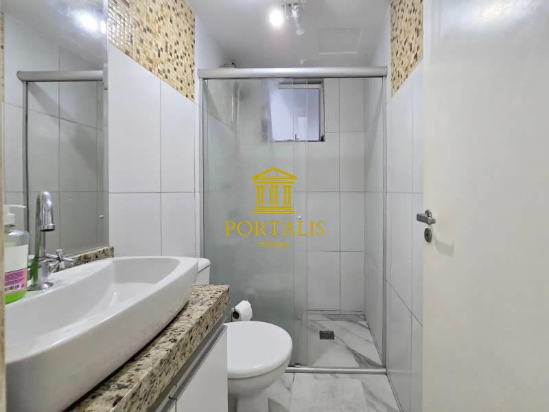 03 quartos com armários planejados e piso em porcelanato, sendo 01 suíte com bancada em granito, armário planejado e box em vidro
