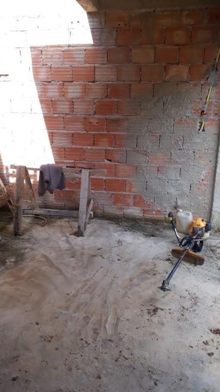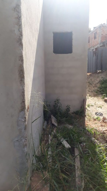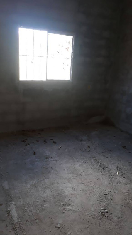 3 quartos ,sala conjugada cozinha e um banheiro e estrutura pra suíte. Cada em laje. Falta acabamento