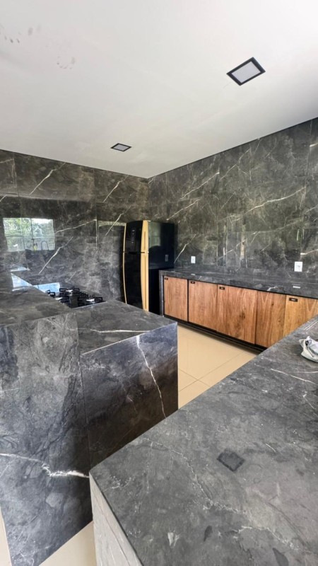 O imóvel conta com acabamentos em porcelanato, rebaixamento de gesso com iluminação em LED, bancadas esculpidas e piscina em formato de praia artificial com cascata, proporcionando conforto e sofisticação em um amplo espaço externo.