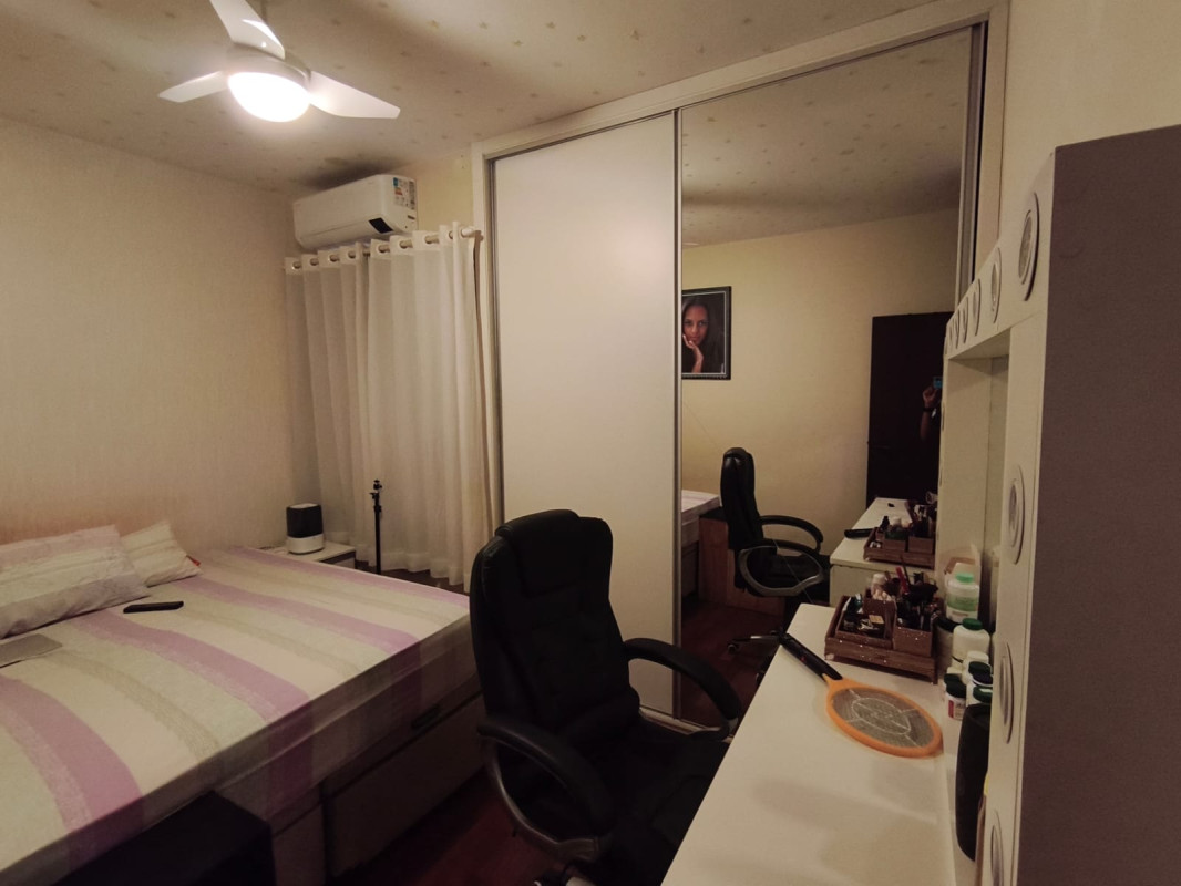 Ala íntima, 03 quartos confortáveis, sendo uma suíte-master equipada com ar condicionado, closet e armários nos quartos. Os outros dormitórios também possuem armários e ventilador de teto, atendidos por um banho social completo, cozinha com armários e área de serviço separada com armários.