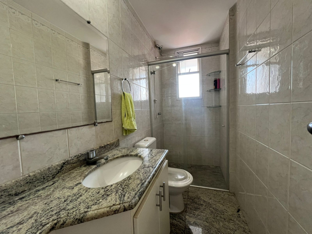 lavabo e banho completo com box blindex, ideal para atender a área superior e o lazer.
